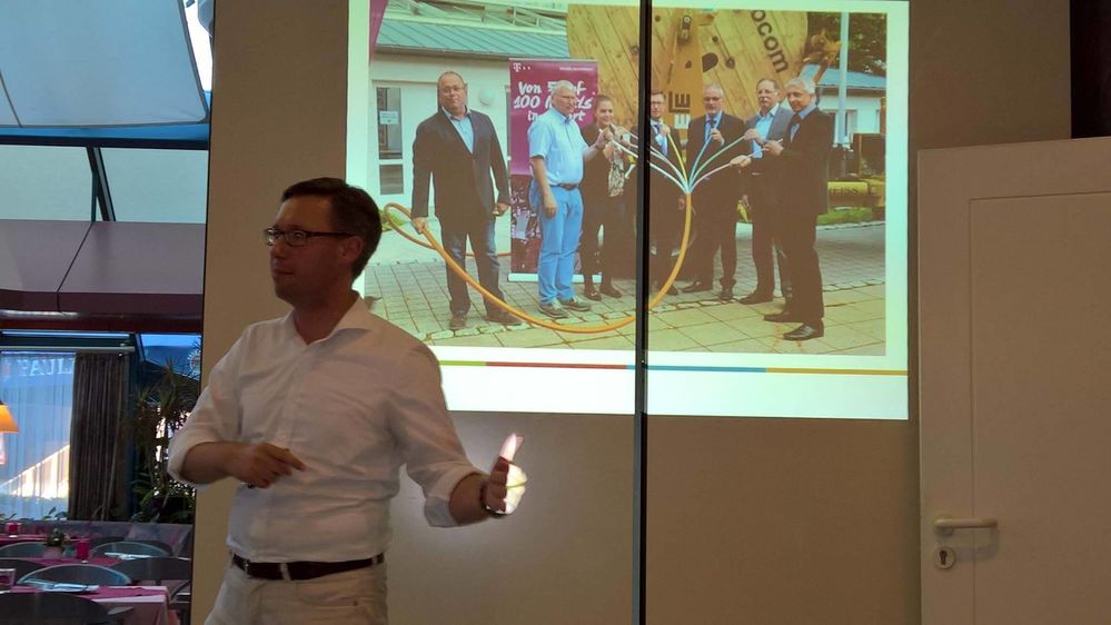 Trotz hochsommerlicher Temperaturen und vorhergegangenem Fussballländerspiel drängten sich 40-50 Gäste im Restaurant ‚Glashaus‘. Dr. Michael Jehle begrüßte für das Leitungsteam des ‚KF‘ und leitete mit der Feststellung ‚Es hat sich einiges getan‘ zum Referenten des Abends über. Stipp nannte im Rückblick des ersten Amtsjahres ‚schnelles Internet für Wirtschaft und Bürger‘, Gemeinschaftsschule als „absolut richtiger Schritt“, verabredete Investitionen von 4,8 Mio. Euro bis 2019 in die Schule, erfolgreiche Sanierung in der Friedrichstrasse und nun weiter in der Eduardstrasse (kritisch zum Bauablauf dazu Anwohnerin Uschi Rose) , Anbau Feuerwehrhaus mit großem ehrenamtlichen Engagement, Bürger- und Gesundheitshaus, Integration von Flüchtlingen, Beschluss für mit 900.000 Euro umgebautes Kinderbecken im Freibad sowie Weichenstellungen für eine neue Bestattungskultur mit mehr Urnengräbern auf dem Friedhof als wichtige Wegmarken.