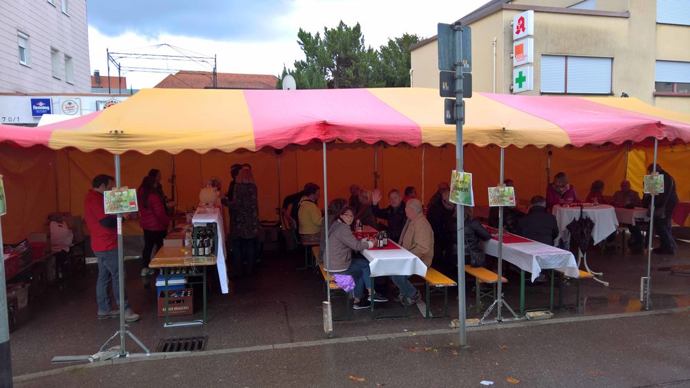 Trotz dem schlechten Wetter, das allen rührigen Organisatoren, Ausstellern und Anbietern und deren Engagement im wahrsten Sinne des Wortes ins Gesicht blies, war die Zufriedenheit bei der Salacher SPD doch groß. Zum zweiten Mal hatte man sich nun schon am Aktionstag des Handels-und Gewerbevereins Salach beteiligt. Und man kann sagen: die 'Weinlaube' hat ihren Platz im Angebot gefunden und wurde von den Besucherinnen und Besuchern geschätzt und aufgesucht. Für die Sozialdemokraten, die in unserer Gemeinde schon seit jeher mit Festen gerne 'unter den Leuten' sind, ein Grund Dankeschön zu sagen.