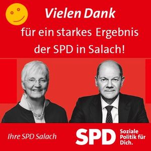 Erfreulich auch die Ergebnisse in unserer Gemeinde: Mit 23,3 % in Salach liegt die SPD in unserer vormals konservativ dominierten Gemeinde nun exakt im Durchschnitt des Bundestagswahlkreises Göppingen. Und sie liegt recht deutlich über dem baden-württembergischen Landesdurchschnitt der SPD von 21,6 %. Besonders bemerkenswert: Mit einem kräftigen Plus von 6,1 Prozent gegenüber dem SPD-Ergebnis der Wahl 2017 in unserer Gemeinde setzen die wählenden Salacher Bürger ein kleines Ausrufezeichen. Die Ortsvereinsvorsitzende Ingrid Katz-Hofelich: „Dafür sind wir sehr dankbar. Natürlich haben der Spitzenkandidat und die gute Wahlkampagne den Schub für die SPD insgesamt ausgemacht. Für das örtliche ‚Extra-Plus‘ war aber sicher maßgeblich, daß bei uns im Ortsverein die Rädchen ineinander gewirkt haben und daß unsere SPD in Salach kommunal und lokal präsent, profiliert und bekannt ist!“
