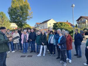 Der langjährige Gemeinderat Wolfgang Arnold hatte sich bereit erklärt, als dort Aufgewachsener und sachkundiger ‚Kommunaler‘ Einblicke zu geben, wis das Unterdorf entstand und was es war. Und eine über 30-köpfige Interessentenschar spazierte mit vielen Fragen und Erzählungen mit ihm vergangenen Donnerstag durch das Quartier. Der Referent verstand es hervorragend, mit Sachkunde und persönlichen Erinnerungen ein Bild des alten Unterdorfs zu vermitteln. Nach den erheblichen baulichen Maßnahmen, ausgehend vom Bau der Bahnunterführung, hat das Unterdorf heute ein anderes Gesicht. Aber für nicht wenige der Teilnehmer gingen die Erinnerungen bis weit in die Tage ihrer Kindheit zurück. „Schee wars!“ hörte man am Ende immer wieder.