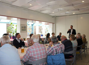 Etwas über zwanzig Gäste hatten zwischen zwei Europameisterschaftsspielen am Montagabend des 27. Juni doch den Weg ins ‚Glashaus‘ gefunden. Ein Beleg, dass „sozialer Zusammenhalt in einer sich immer mehr auffächernden Gemeinde“, wie es Peter Hofelich für das KF-Team eingangs ausdrückte, ein gewichtiges Thema in der auf 8000 Einwohner angewachsenen Mitte Fils-Kommune ist. „Auch wenn Oberdorf, Unterdorf, Siedlung oder Neubaugebiet als bekannte Begriffe zeigen, dass es immer schon ‚Quartiere‘ gab, rücken zwei kommunale Aufgaben, städtebauliche Integration einerseits und Aufwertung der Ortsteile andererseits, doch in den Vordergrund!“